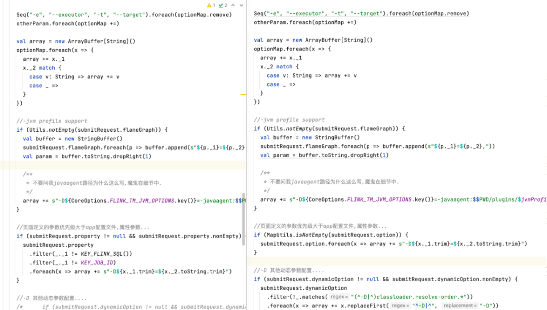 对比结果看到:除了部分包名和类名发生变化之外,源码部分基本都来自 StreamPark 。结论:整个 chitu-sdp-flink 模块下 80% 以上的代码都 copy 自 StreamPark。