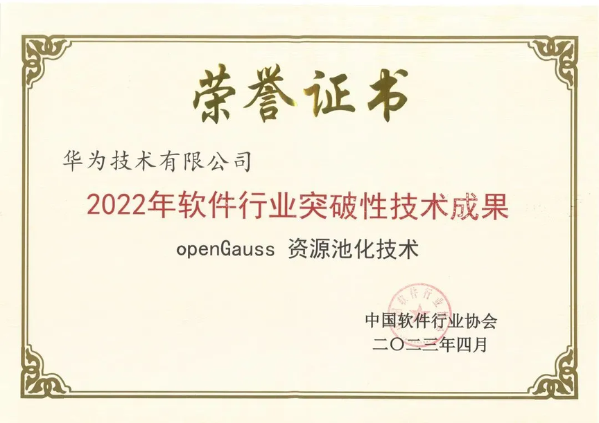 openGauss 资源池化技术入选“2022 年软件行业突破性技术成果”