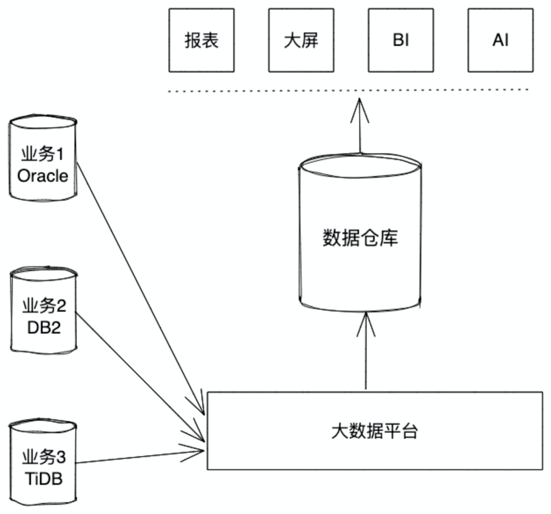 1. 大型企业内有各种各样的内部系统,一般情况下,这些业务系统建设时间不同,建设厂商不同,甚至于底层数据产品都有较大差异。领导要看全局,看大数,看趋势,需要一个架构把数据整合起来,这个架构叫做数据仓库