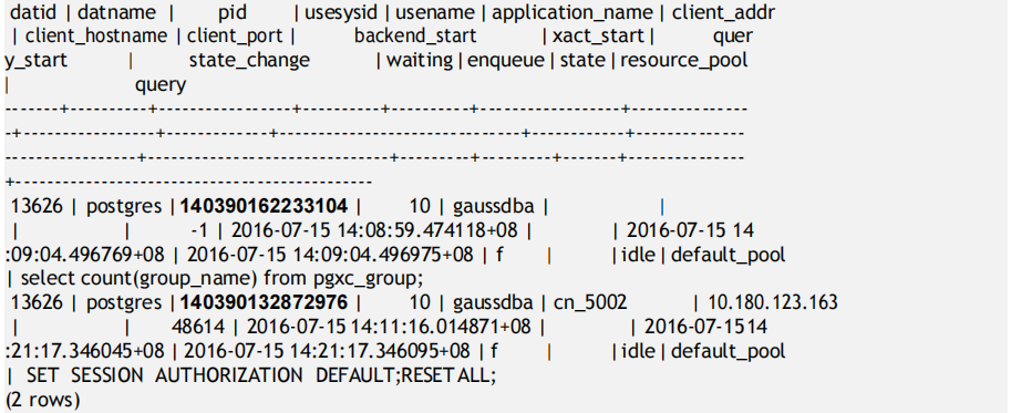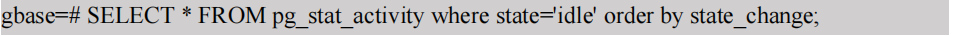 步骤1 执行如下SQL语句,查看state字段等于idle,且state_change字段长时间没有更新