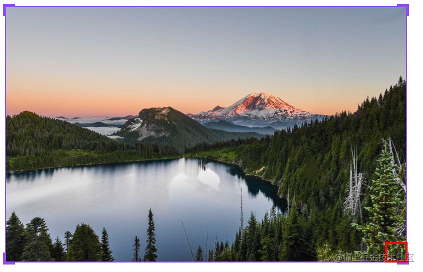 该区域可以为下图红框框起来的区域,图像左上、左下、右上、右下四个角均会有一个这样的区域。