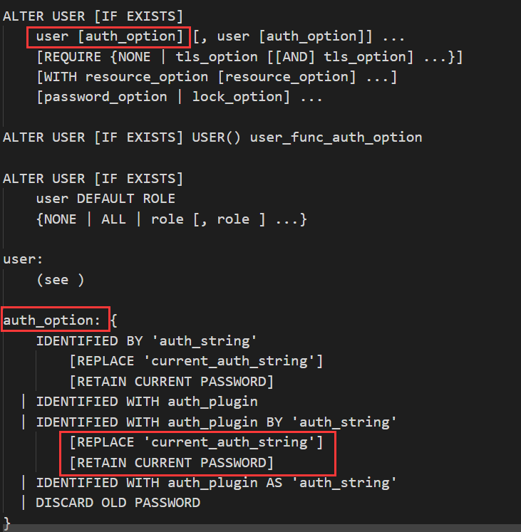 通俗些可以理解为双密码,retain current password这个语法只在修改密码的场景中使用,在create user中是不能用的。意思是修改密码的时候原来的密码依旧可用,这样对于业务是最友好的方式。