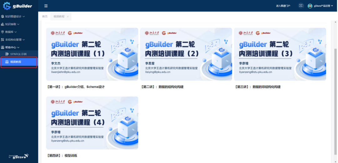 审核通过后,您可进入gBuilder系统,在左侧菜单的帮助中心—视频教程中观看gBuilder的使用视频教程。我们提供了四期详细的操作视频为您介绍如何使用操作gBuilder。