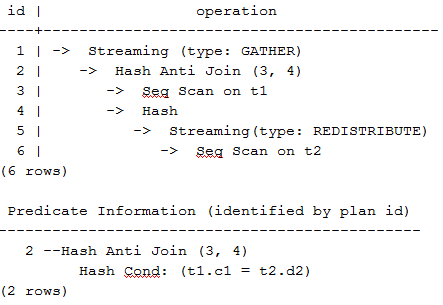 not in语句需要使用nestloop anti join来实现,而not exists则可以通过hash anti join来实现。在join列不存在null值的情况下,not exists和not in等价。因此在确保没有null值时,可以通过将not in转换为not exists,通过生成hash join来提升查询效率。