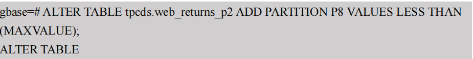 增加分区 P8,范围为 40000<= P8<=MAXVALUE。