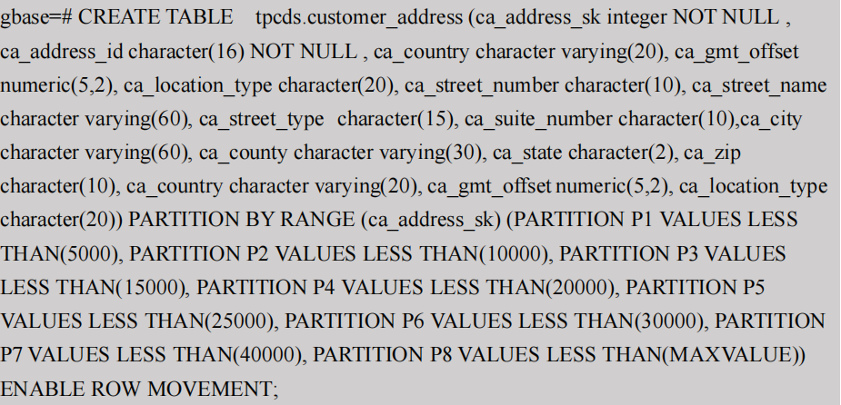 步骤 1 创建分区表(假设用户已创建 tpcds schema)