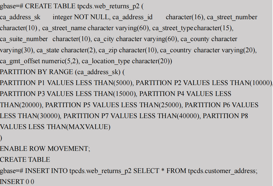 创 建 了 一 个 表 tpcds.customer_address 的 备 份 表 tpcds.web_returns_p2 , 现 在 需 要 将 表