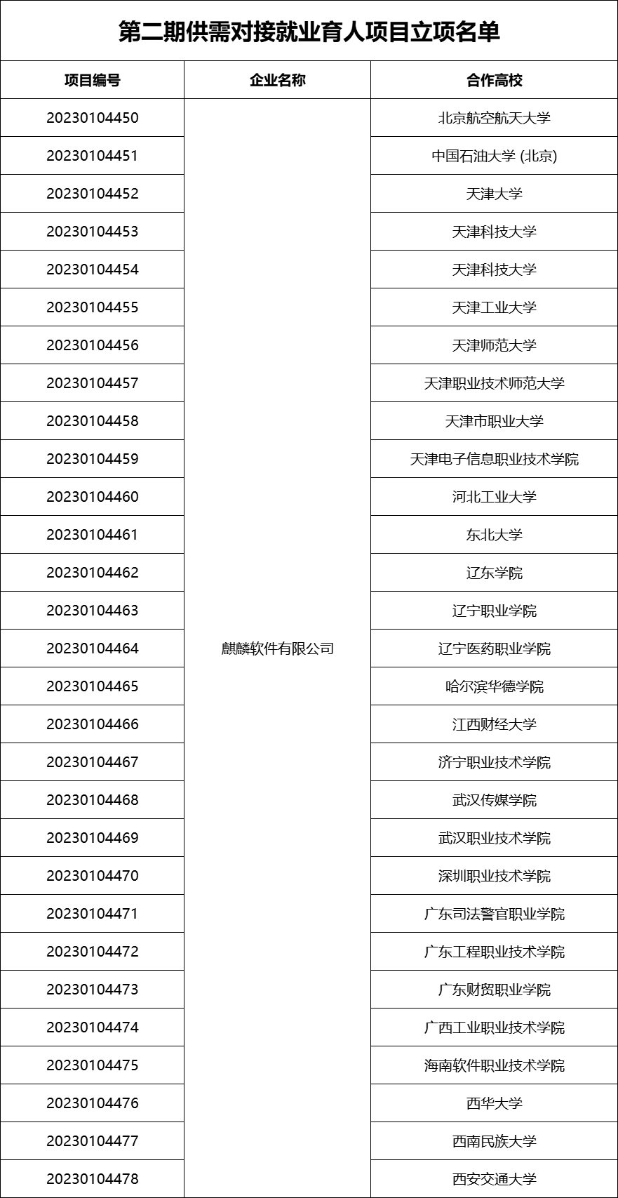 为落实党中央、国务院“稳就业”“保就业”决策部署,深化产教融合、校企合作,推动人才培养与就业有机联动、人才供需有效对接,教育部实施供需对接就业育人项目。麒麟软件积极响应参与,已连续两年入选教育部供需对接就业育人项目企业指南名录。