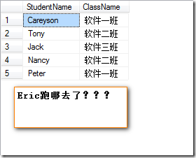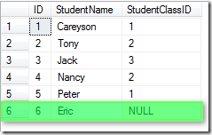 假设还是上面两个表,学生和班级.我在学生中添加一个名为Eric的学生,但出于某种原因忘了填写他的班级ID: