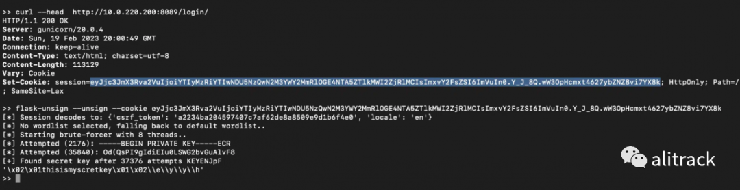 这个广泛使用的默认 Flask 密钥对于攻击者来说是已知的,他们可以使用flask-unsign[4]并伪造自己的 cookie 来获得目标的管理员访问权限,访问连接的数据库或在应用服务器上执行任意 SQL 语句。
