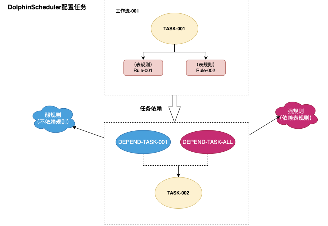 数据质量:关联调度、通过强弱规则是否截断任务、丰富的规则模版(参考-- 微众 Qualitis) Ad-Hoc:SQL开发/调试、发布调度、数据订阅 任务血缘:收集DolphinScheduler的任务依赖关系、任务粒度依赖关系、方便抽象全局DAG(包含所有工作流) 数据集成:依赖DolphinScheduler丰富任务类型的支持,主要包含:数据导入、数据导出、数据加工