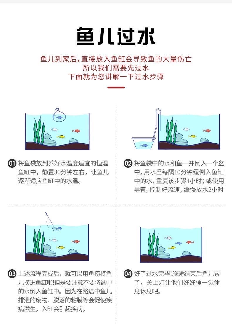 自己总结过之前的养鱼过程为什么前几天的小鱼死亡率很高,我觉得主要还是过水的阶段没有把控好。 过水阶段要先让鱼儿适应当前鱼缸的温度,大概30分钟左右,然后要把当前鱼缸的水放入一些,让鱼儿能更好的适应当前的鱼缸水质和环境,这个阶段时间长一些,大概2个小时,最后把鱼儿用渔捞放入鱼缸中,切记把袋子里面的水直接放入鱼缸。