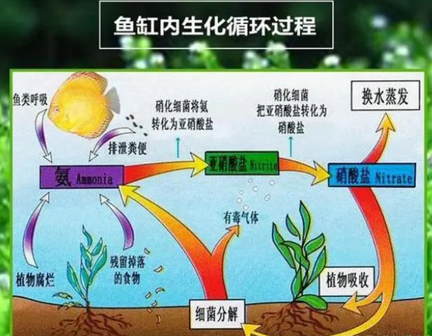 水质是最重要的,这个阶段对我的影响很大,因为有些小鱼活了几天可能会突然死掉几条,最多的一次死了6条,当时也没想明白。后来就狂补一些知识,发现水质的培养是很关键的。鱼缸里面的生活循环是一个很关键的过程,整个过程让我重温了化学知识,大体的意思是鱼缸里面的氨氮会转化为亚硝酸盐,亚硝酸盐是有剧毒的,如果含量过高,鱼儿的死亡率就会很高,而硝化细菌可以有效的处理亚硝酸盐,转换成无毒的硝酸盐。