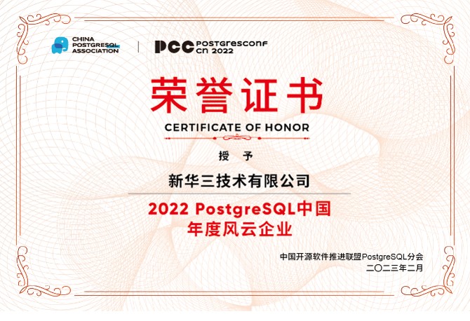 积极拥抱开源生态,新华三荣获PostgreSQL年度风云企业奖