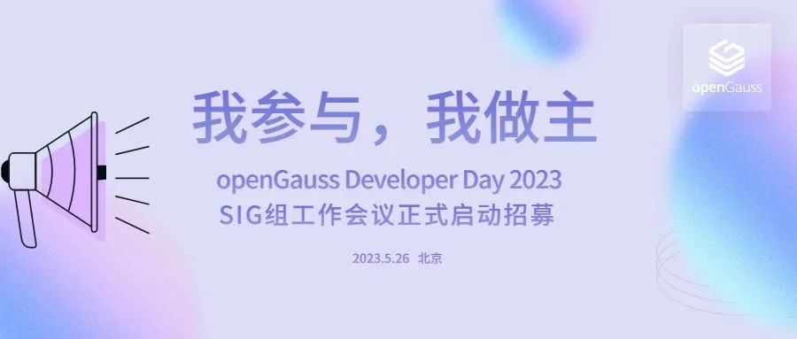 openGauss Developer Day 2023 是由 openGauss 社区举办并将于5月26日在北京举行的开发者峰会。旨在推动openGauss在内核技术、引擎架构、生态工具、数据迁移、智能运维等技术方向的探索与创新。