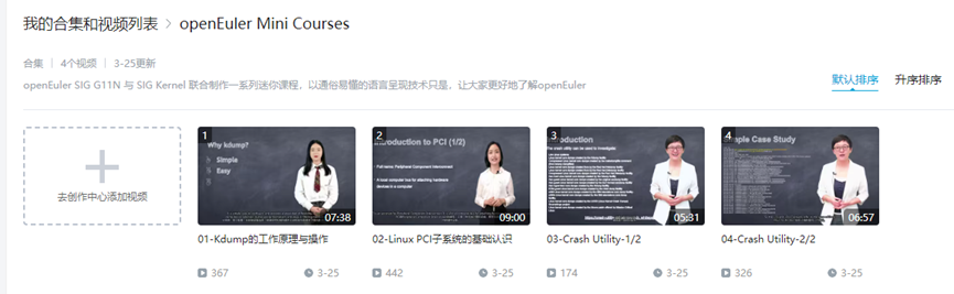 近期, openEuler G11N SIG和Kernel SIG联合推出了一系列迷你课程,以简单易懂的语言分享技术知识,每期不超过10分钟,课程已更新在openEulerB站专区。通过这套课程,我们希望国内外开发者能更好地了解openEuler操作系统,也期待与大家进行更多的交流与探索。目前,该系列已更新至第4期。