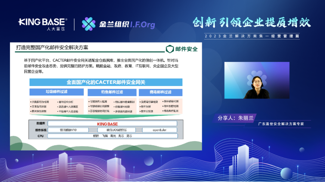 依托金仓数据库,CACTER邮件安全网关信创一体机针对当前邮件安全攻击态势,提供完整的防护方案,赋能金融、政府、教育、IT互联网、央企国企及大型民营企业等。