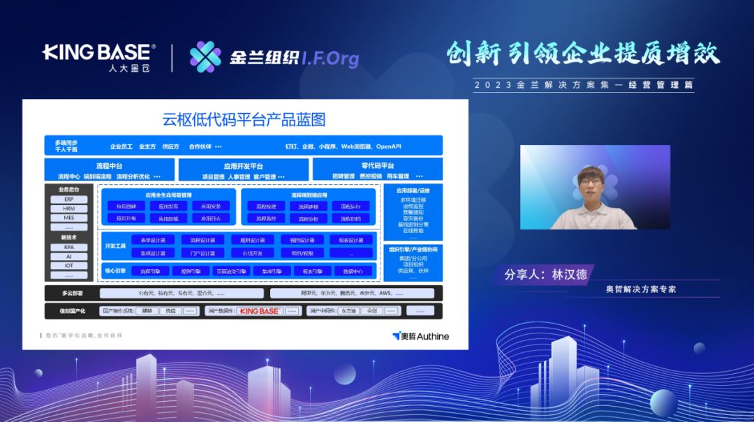 人大金仓联合企业数字化服务商——奥哲发布联合解决方案,将流程设计、流程引擎、表单、组织等模块的能力标准化,通过可视化的构建方式,实现业务流程全闭环周期管理,实现流程在企业内部的持续运营与优化。