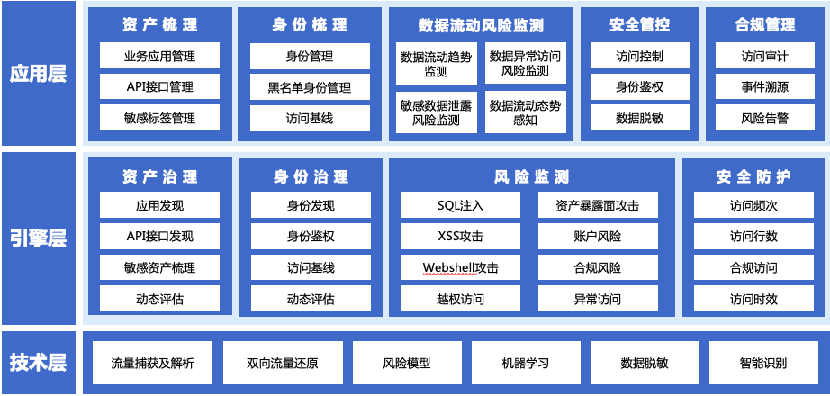 API安全监测与访问控制系统(API-SMAC)基于API资产治理、身份治理、流量管控、访问鉴权、机器学习等多种核心技术,帮助用户梳理庞杂的应用及接口,绘制接口画像和接口访问轨迹,监测敏感数据流动风险,识别接口调用的异常用户行为,为应用系统的业务数据合规正常使用和流转提供数据安全保障。