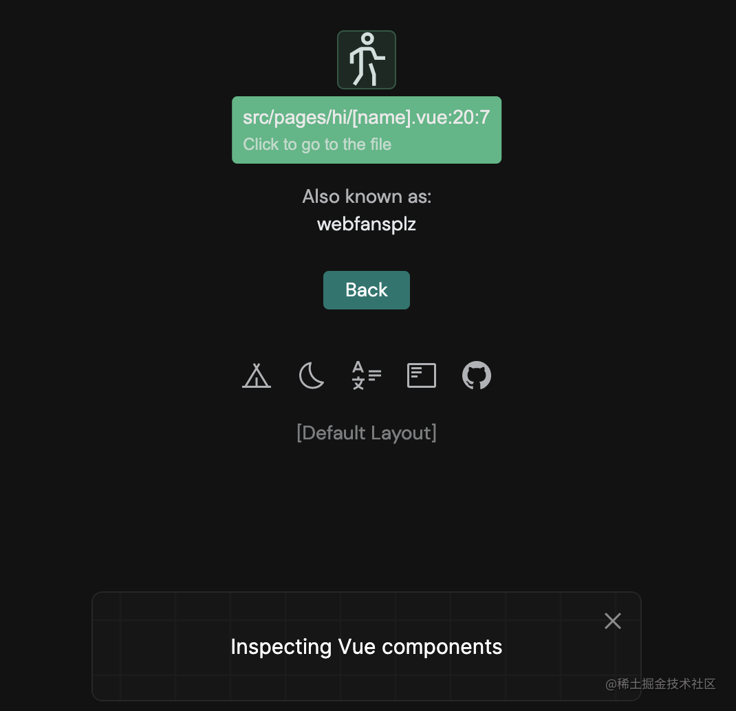 你也可以使用“Inspector”特性来检查DOM树,看看是哪个组件在渲染它。单击以转到特定行的编辑器。使更改更容易,而不需要彻底了解项目结构。(此功能基于vite-plugin-vue-inspector实现)