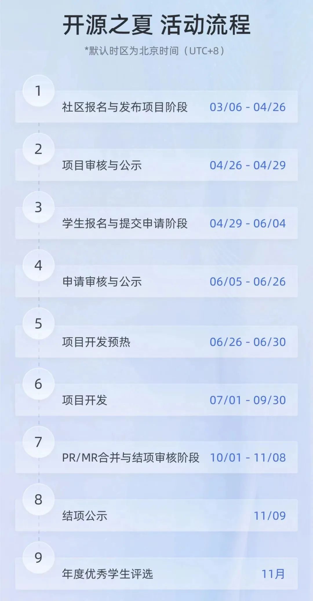 活动联合各大开源社区,针对重要开源软件的开发与维护提供项目,并向全球高校学生开放报名。