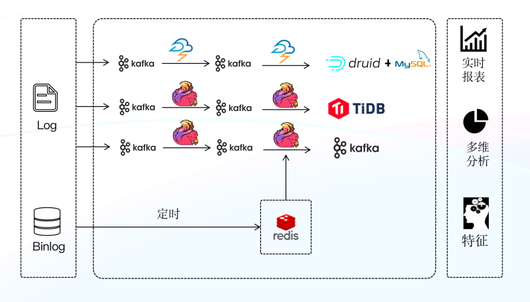实时大盘:实时大盘场景是我们对外呈现数据的关键载体,需要从多个维度监控商业化大盘的指标情况,包括流量指标、消费指标、转化指标和变现指标,因此其对数据的准确性要求非常高(保证数据不丢不重),同时对数据的时效性和稳定性要求也很高,要求实现秒级延迟、分钟级数据恢复。