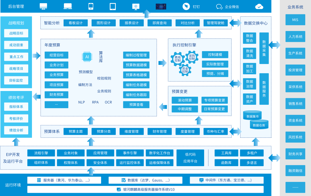 企业高质量发展需要一流的管理体系支撑,以信息化手段推进企业经营业务的持续改善与优化。企业管理方法、财务管理方法的创新以及与数字化技术的融合,促使企业全面预算管理也在不断向数字化、场景化、智能化的方向迈进。东华软件携手麒麟软件共同打造的全面预算管理解决方案,旨在解决企业的战略落地、资源配置、绩效提升等问题,通过发挥全面预算管理的指挥棒作用,支撑企业数字化转型发展、精细化数据运营和数据管控系统建设。