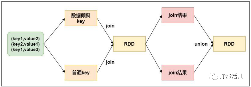 此方法对groupByKey、reduceByKey造成的数据倾斜有比较好的效果,仅仅适合聚合类的shuffle的操作,而不适合join类的操作,使用范围较窄。2.3 对倾斜数据单独进行join操作