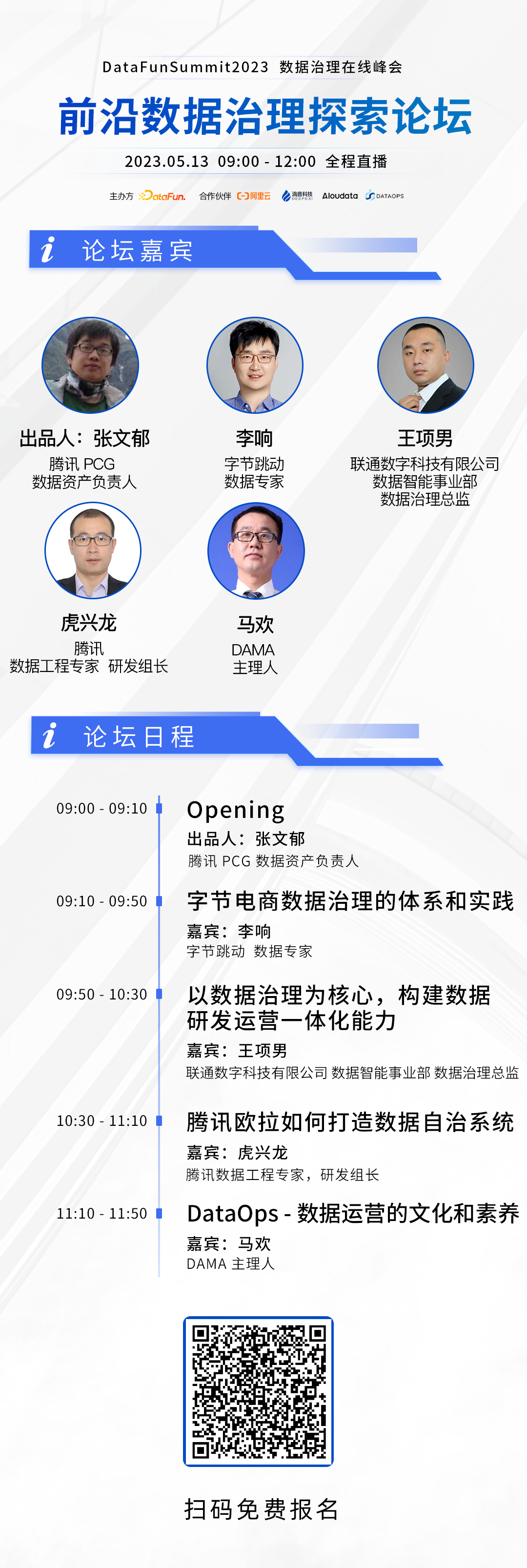 个人介绍:张文郁,腾讯内容和平台事业群大数据平台部数据资产负责人。2010年加入腾讯,负责大数据离线实时平台研发 以及广告、内容推荐系统的研发和团队管理。目前专注于数据资产价值度量,数据治理系统的建设。个人介绍:李响,现负责字节电商数据治理工作,超过10年的数据领域相关经验,有电商、银行、出行、互金多个行业数据领域经历,对于数据治理和数据体系有深入的研究和实践。演讲提纲:随着字节电商业务爆发式增长,数据的规模也随之增长,数据治理和管理变得更为复杂;本文分享字节电商如何体系化的应对数据治理挑战,建设自动化治理方案,实现分布式自驱治理;希望能给大家一些启发,共同探讨体系化数据治理的思路。听众收益:面对高增长复杂的业务,如何构建体系化的数据治理解决方案。王项男 联通数字科技有限公司 数据智能事业部 数据治理总监个人介绍:任职联通数科数据智能事业部,主要负责数据治理工作,带领团队建立公司数据治理机制,推动数据治理落地,实现数据管理降本增效,具备10年以上政府及大型国企的信息系统、数据平台、数据仓库、数据中心建设,数据建模咨询规划和实施,数据治理咨询规划和运营经验。服务过的客户包括国家部委(国资委、工信部、国土部、人社部等)、省级大数据中心(江苏等)、大型国企(中国联通、首都信息发展、12345等)。演讲题目:以数据治理为核心,构建数据研发运营一体化能力个人介绍:11年大数据领域从业经验,擅长大数据平台技术架构、数据治理与分析平台建设,先后在百度、vivo、腾讯负责大数据平台、数据治理平台研发工作,目前担任腾讯数据工程专家、研发组长,负责腾讯欧拉数据治理平台的技术工作。听众收益:介绍腾讯欧拉一站式数据治理平台建设思想和技术方案,阐述标准化数仓、指标治理的落地实践,给听众提供 DataOps、Metric Store、Data Discovery 的实现和技术架构提供参考方案。个人介绍:《DAMA数据管理知识体系》《首席数据官管理手册》《DataOps实践手册》等数据领域畅销书的主译者,数据管理专家,CDMP。演讲题目:DataOps - 数据运营的文化和素养