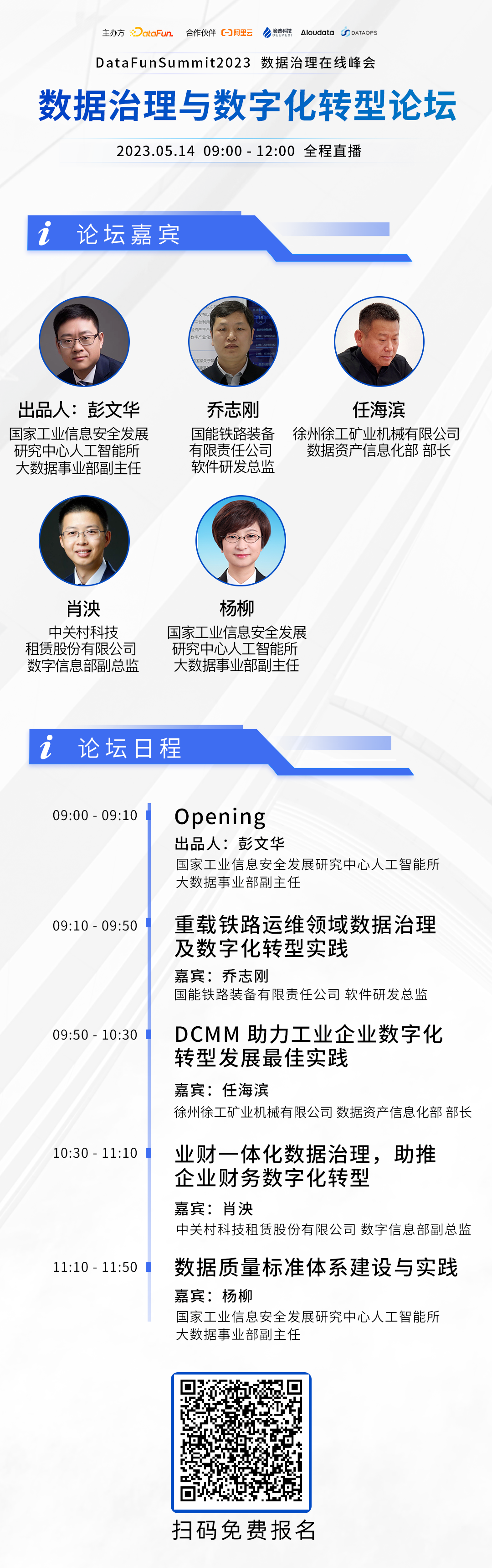 出品人:彭文华 国家工业信息安全发展研究中心人工智能所 大数据事业部副主任个人介绍:彭文华,国家工业信息安全发展研究中心人工智能所大数据事业部副主任,高级工程师,数据治理专家,《首席数据官管理手册》主要译者,多项央企集团数据治理项目负责人。个人介绍:22年入职国能铁路装备有限责任公司,主要负责大数据系统架构设计、技术评估;新技术预研与攻关;数据资产开发;负责设计了铁路货车车辆检修系统、重载铁路货车状态修数据中建设。曾在北京京天威科技发展有限公司,从事铁路行业系统架构、大数据开发、数据治理工作。演讲题目:重载铁路运维领域数据治理及数字化转型实践演讲提纲:国能铁路装备公司与重载铁路货车简介、国能铁路装备公司的数据治理过程、数据治理成果展现。任海滨 徐州徐工矿业机械有限公司 数据资产信息化部 部长个人介绍:亚洲澳门国际公开大学 MBA,有着在机械制造行业近二十年的运营管理经历,实施过精益及 MES、DNC 等系统,参与 ERP 的实施,大幅提升生产效率;有着离散型制造业智能工厂规划的经验和实施经历。演讲题目:DCMM 助力工业企业数字化转型发展最佳实践1. 建立跨部门、跨职能的数字化专员团队,提升数字化转型协同力;2. 定期全业务流程的运营数据回顾例会,提升整体数据质量和应用效果;肖泱 中关村科技租赁股份有限公司 数字信息部副总监个人介绍:北京航空航天大学硕士,深耕融资租赁行业信息化管理13年,数据治理负责人,曾主导公司财务数字化转型规划及落地,研究方向为数字化转型与企业架构。演讲题目:业财一体化数据治理,助推企业财务数字化转型杨柳 国家工业信息安全发展研究中心人工智能所 大数据事业部副主任个人介绍:杨柳,国家工业信息安全发展研究中心人工智能所大数据事业部副主任。工作于国家工业信息安全发展研究中心,属于工业和信息化部直属事业单位,是我国工业领域工信领域智库咨询与安全技术研究权威机构。全国两化融合标委会大数据与制造业融合管理标准工作组(TC573/WG4)副秘书长。主要从事大数据、软件产业战略规划产业技术研究,参与完成工信部、网信办等部委及地方政府战略规划、重大项目和课题20余项。1. 如何构建全面、细致、可实施的数据质量评估体系3. 数据流通交易环节,数据产品质量如何监管,如何开展测试评估