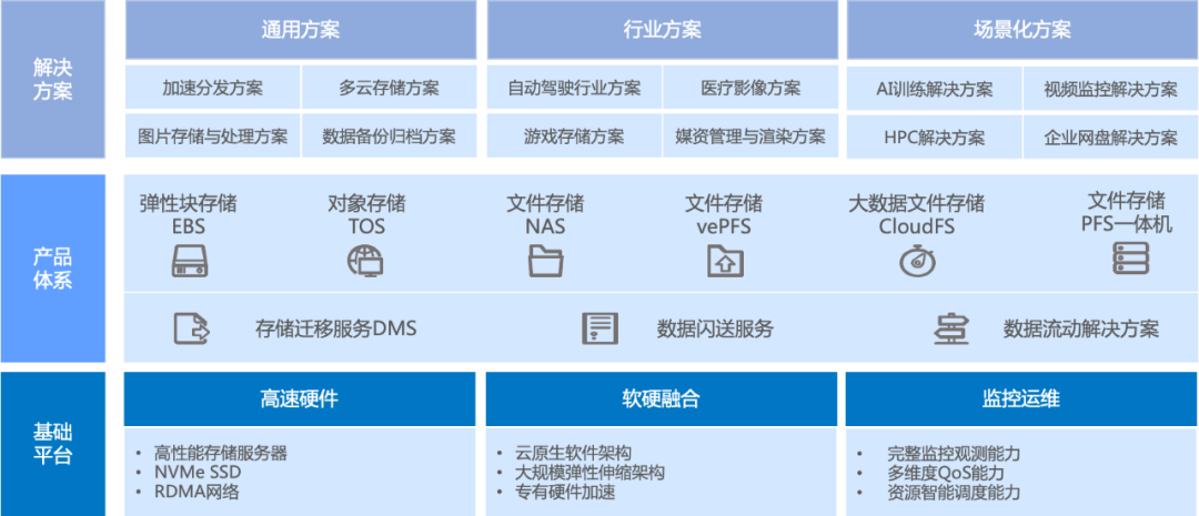 做公有云服务,不仅要做好存储,更好做好对象存储。火山引擎的存储服务已经全面覆盖对象存储、块存储、文件存储、数据备份、数据容灾、以及数据传输与边缘处理多个方面,云用户可以按照自己具体应用需要进行灵活选择。