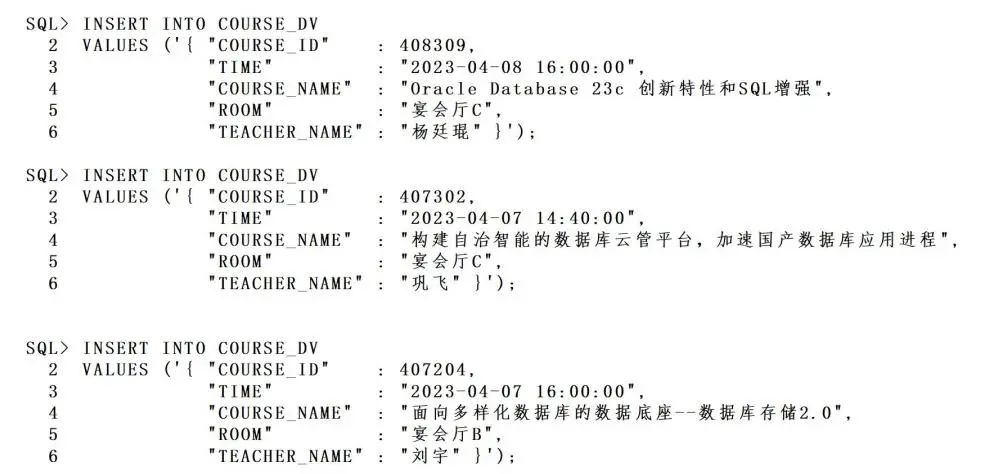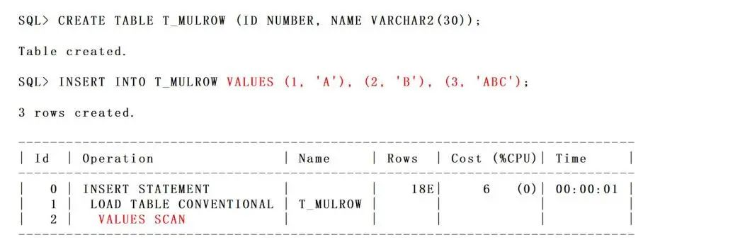 Oracle 23c通过EXISTS来判断表是否存在。相比于以往DROP的表不存在就报错的情况,Oracle 23c可以支持即使表不存在DROP也不会报错。同理,实现了无论表是否已经存在,创建新表都不会被报错的语法,这减少了批量任务的报错情况。但值得注意的是,数据库不报错并不代表结果是正确的。例如,由于原表已经存在而导致的新表创建失败情况,采用新的语法程序没有报错,流程也走下去了。但需要使用者自己保证新表跟原表的结构在各方面是一样的。这一特性对开发更为友好:给予了必要的系统权限,使得开发者可以进行日常的工作。除了这些系统权限外,还给予了一些必要视图的查询权限。8、构建多行记录