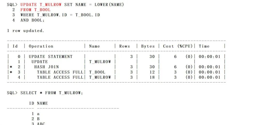 Oracle 23c具有update的JOIN,可以对关联查询进行更新。在原来的版本当中,更新两张表的关联结果需要这两张表建立了主外键关系。而在新版本中,可以直接update目标表,并set一个值。这样逻辑就非常清爽,代码也非常简单。10、RETURN支持OLD