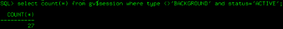 首先查看活动会话数,如下显示活动会话数总共27个,是很正常的,可以肯定临时表空间占用较高的原因并非由大量需要排序的异常会话引起,常见的这个原因可以排除。