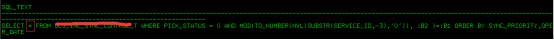 从上面可以看出有10个进程占用了大约100多G的临时表空间,且显示为TEMPORARY LOB_DATA,说明正是这10个进程导致的临时表空间被占满且不释放,经连续多次观察这10个进程执行的为sql_id为d12s8kpkp85zq的同一个sql。该sql语句如下: