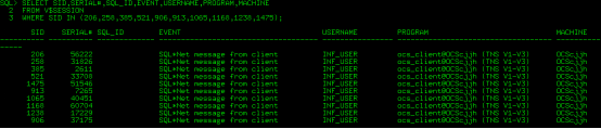 从临时LOB段的使用情况来看,主要由10个会话占用了临时表空间,且这10个会话均是LOB缓存占用了较大的空间。通过持续查看这10个会话的session信息,可以看出这10个会话执行的正是第一步定位的语句,且这10个会话均是由IP地址为xxxx的应用主机的ocs_rentfee_imp这个程序发起,会话sid一直不变,与应用开发商确认这个程序是C程序写的。