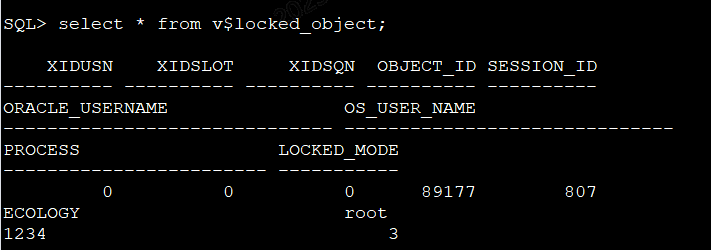select b.owner,b.object_name,a.session_id,a.locked_mode from v$locked_object a,dba_objects b where b.object_id = a.object_id;
