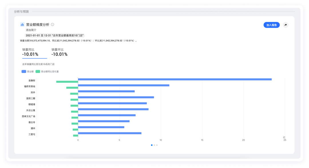 北极九章还能够根据用户搜索的问题自动展示关联问题、多维度下钻分析和预测分析,帮助用户建立分析思路、挖掘数据价值,提供更准确的洞察,辅助业务决策。