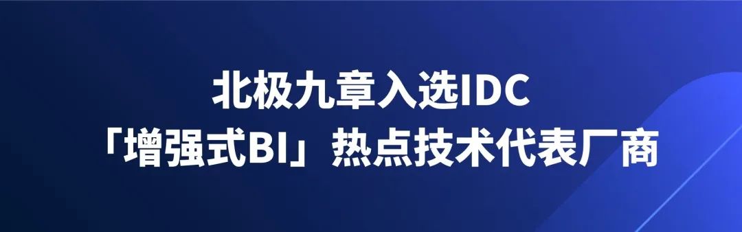 此前,北极九章还入选IDC“中国人工智能与大数据技术现状及趋势分析”报告增强式BI领域代表厂商。