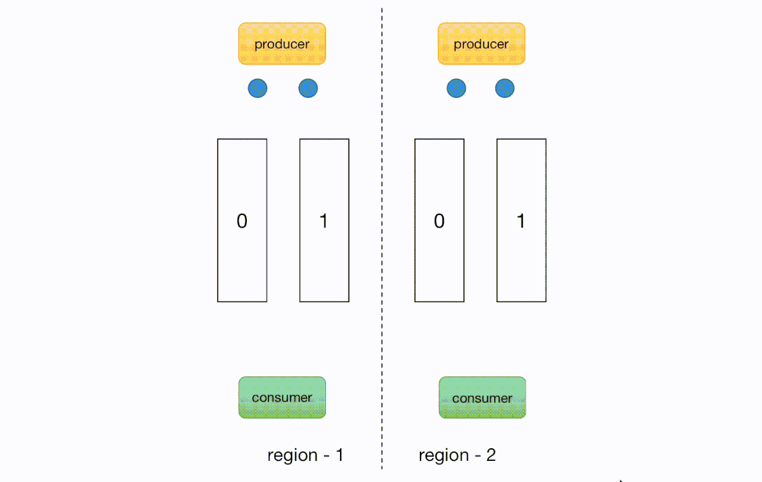 我们以一个实际的例子来讲解以上方案的可行性:Topic-A 在两个可用区上均存在分区,SDK在使用时需要配置自己所在的region。