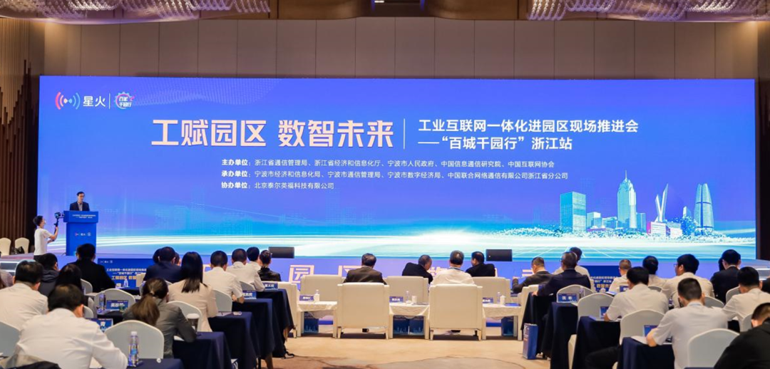 2023年5月6日,由浙江省通信管理局、浙江省经济和信息化厅、宁波市人民政府、中国信息通信研究院(以下简称“中国信通院”)、中国互联网协会联合主办,宁波市经济和信息化局、宁波市通信管理局、宁波市数字经济局、中国信通院工业互联网与物联网研究所、中国联合网络通信有限公司浙江省分公司承办,北京泰尔英福科技有限公司协办的工业互联网一体化进园区现场推进会——“百城千园行”浙江站活动在宁波召开。活动以“工赋园区、数智未来”为主题,工业和信息化部信息通信管理局一级巡视员王鹏通过视频致辞,浙江省通信管理局党组成员、副局长陈波,浙江省经济和信息化厅总工程师李永伟,宁波市政府办公厅副主任、党组成员马建江等领导出席活动并致辞。中国工程院院士沈昌祥,中国信通院总工程师敖立到场作主旨报告。中国互联网协会副理事长兼副秘书长何桂立,宁波市通信管理局、各地市经信部门相关领导,各基础电信企业相关负责人,工业互联网领域的行业专家,浙江省内重点制造业企业、标识解析二级节点企业、网络服务商和新闻媒体代表等出席本次活动。