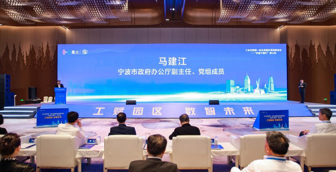 会上,浙江省通信管理局党组成员、副局长陈波,浙江省经济和信息化厅总工程师李永伟,宁波市政府办公厅副主任、党组成员马建江,中国信通院总工程师敖立,中国互联网协会副理事长兼副秘书长何桂立,中国电信股份有限公司浙江分公司党组成员、副总经理刘健,中国移动通信集团浙江有限公司副总经理张汉良,中国联合网络通信有限公司浙江省分公司党组成员、副总经理虞允纲,华数数字电视传媒集团有限公司党委委员、总编辑、副总经理唐雨红共同启动工业互联网一体化进园区“百城千园行”(浙江站)。