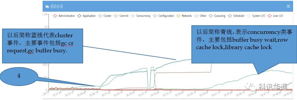 总结,根据以上截图轻易可以分析出,XXXXXX1上的两个实例由于IO相关进程率先出现问题而引发阻塞,随后XXXXXX2上的两个实例受到影响引发了大量的GC等待,高峰时有2K多个活动回话等待GC.