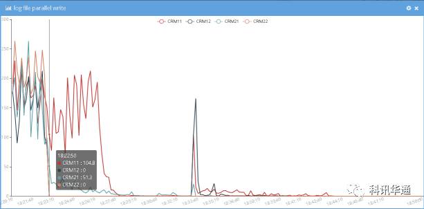 18:22:50, XXXXXX2主机上两个实例LGWR进程写磁盘次数直接降低到0次。