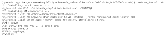 执行bash om_install.sh 进行安装,脚本执行完后,使用 kubectl get pods 查看OM服务状态信息,所有服务状态为 “running”时, OM 安装完成。