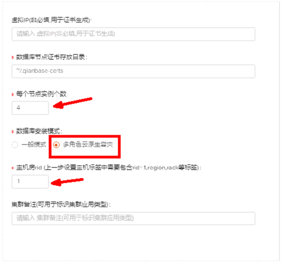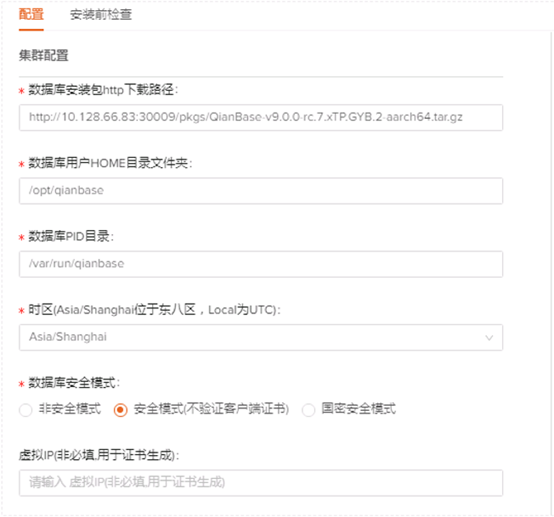 填写配置信息,其中注意:需要在数据库安装模式中选择【多角色云原生容灾】,点击【下一步】开始安装
