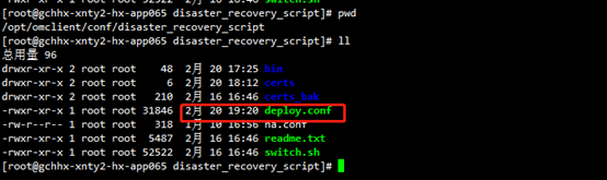 4.在主机/opt/omclient/conf/disaster_recovery_script目录中,查看deploy.conf文件时间是否更新。