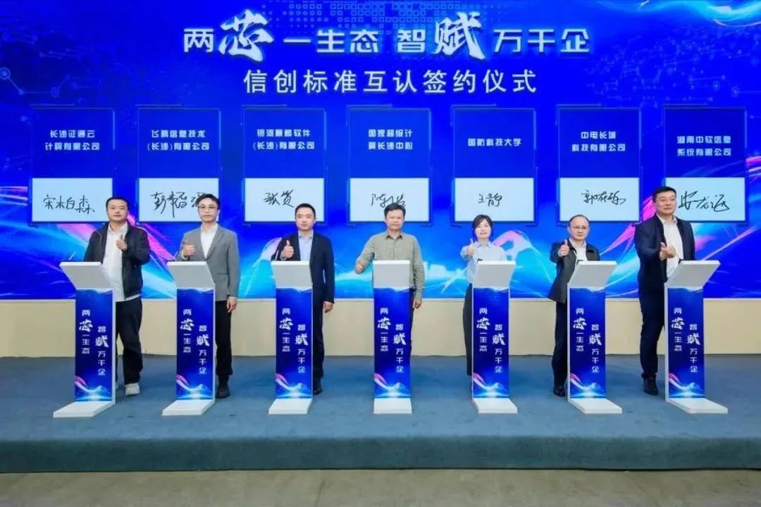 中国工程院院士廖湘科,湖南大学党委副书记孙炜,湖南湘江新区(长沙高新区)党工委委员、管委会副主任郭力夫等相关专家和领导就进一步加速推进网信生态建设发表讲话,并共同启动了“两芯一生态 智赋万千企”行业系列活动。活动将加强行业国产化顶层设计,推动网信产品在行业信息化建设中的应用落地,引导产业健康发展。