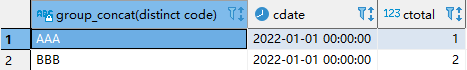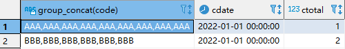 我们分解来做,可以看到group_concat(code),得到的是所有记录的code值拼接成新字段,