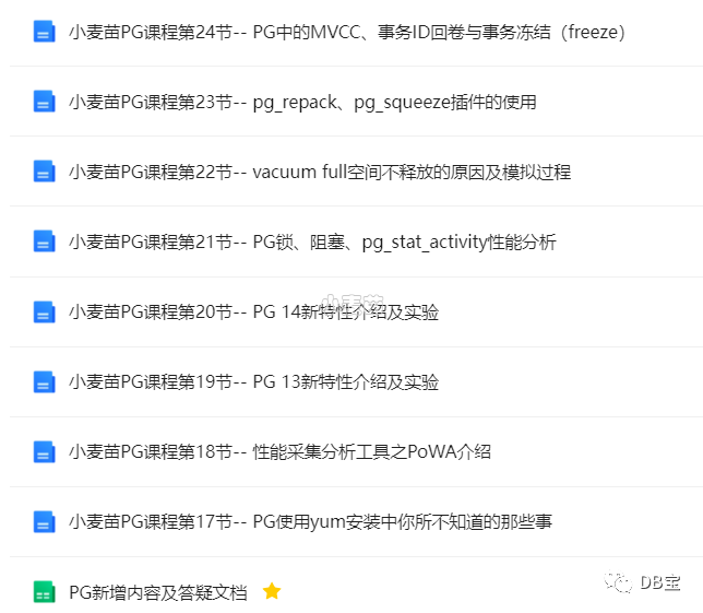 1• 小麦苗PG课程第0节-- 小麦苗课程介绍、数据库通用学习方法论等:https://docs.qq.com/doc/DT0JPbUZXUk5LbVpB